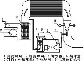 圖1單循環(huán)制膠球清洗裝置系統(tǒng)
