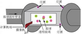 開發(fā)一種無需更換原膠球清洗裝置系統(tǒng),可以直接附加在原設(shè)備上的膠球回收自動(dòng)監(jiān)測(cè)系統(tǒng),如圖1所示,它可以自動(dòng)地監(jiān)測(cè)回收膠球的數(shù)量及其半徑,這樣運(yùn)行人員就可以根據(jù)檢測(cè)結(jié)果適時(shí)地添加或更換膠球,保證膠球的數(shù)量以及質(zhì)量,以期達(dá)到佳的清洗效果。