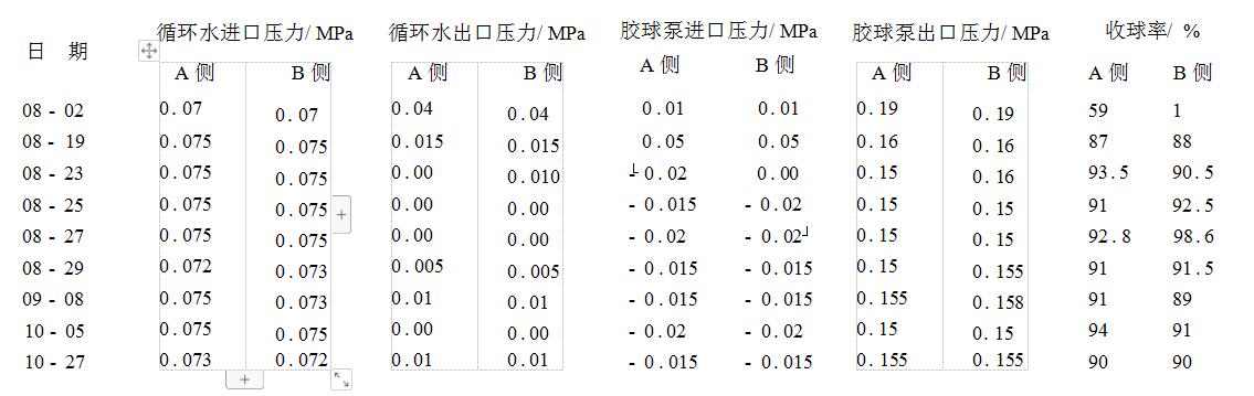 表18號機(jī)膠球清洗裝置運(yùn)行情況摘錄