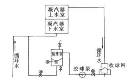 膠球隨循環(huán)水流入循環(huán)水回水管,繼而至收球網(wǎng)并匯集在收球網(wǎng)底部,然后在膠球泵作用下被送進(jìn)裝球室重復(fù)上述運(yùn)動(dòng),達(dá)到清潔凝汽器銅管的目的。