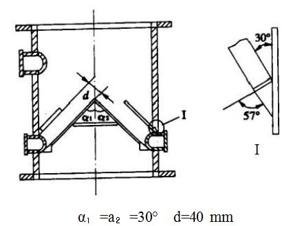 由于HSSW-1600型收球網(wǎng)是活動收球網(wǎng),在循環(huán)水的沖擊下,定位銷不緊,易使收球網(wǎng)變位,邊緣出現(xiàn)空隙而造成漏球;同時在收球網(wǎng)兩側(cè)收球處上部易形成回流區(qū),使部分球在收球網(wǎng)兩側(cè)懸浮,不回流?紤]我廠循環(huán)水是閉式循環(huán),水質(zhì)良好可不用反沖洗功能,故把原活動式收球網(wǎng)改成焊接固定式收球網(wǎng),同時在收球網(wǎng)兩側(cè)收球管口上方加裝了導(dǎo)流板(見圖4)。