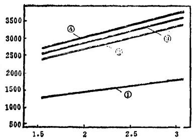 圖3結(jié)垢銅管用特種海綿球清洗后傳熱系數(shù)的變化①?gòu)哪魅∠碌慕Y(jié)垢銅管;②通過(guò)300次特種球,③通過(guò)900次特種球;④用標(biāo)準(zhǔn)海綿球清洗二星期凝汽器用海軍銅管,冷卻水為河水。取出一根結(jié)垢嚴(yán)重的銅管,測(cè)出其傳熱系數(shù)在冷卻水流速為2.3米/秒時(shí)為1,586大卡/米2·時(shí).C,比新管的傳熱系數(shù)降低近60%。先用表面有磨料層的特種球?qū)@根銅管進(jìn)行清洗,在清洗24小時(shí)后(約相當(dāng)于通過(guò)300次球),傳熱系數(shù)升至2,821大卡/米2·時(shí)·C;用直徑稍大的特種球繼續(xù)清洗,通過(guò)900次球后,傳熱系數(shù)升至2,991大長(zhǎng)/米2·時(shí)·C,與結(jié)垢時(shí)相比較,傳熱系數(shù)降低值約恢復(fù)了61%。用標(biāo)準(zhǔn)海綿球繼續(xù)運(yùn)行二星期后,傳熱系數(shù)達(dá)到3,113大卡/米2·時(shí)·C。以上試驗(yàn)說(shuō)明了使用特種球的效果。采用特種球時(shí),必須嚴(yán)格選擇,大小和麻蝕性能要合適,并確定運(yùn)行時(shí)間。
