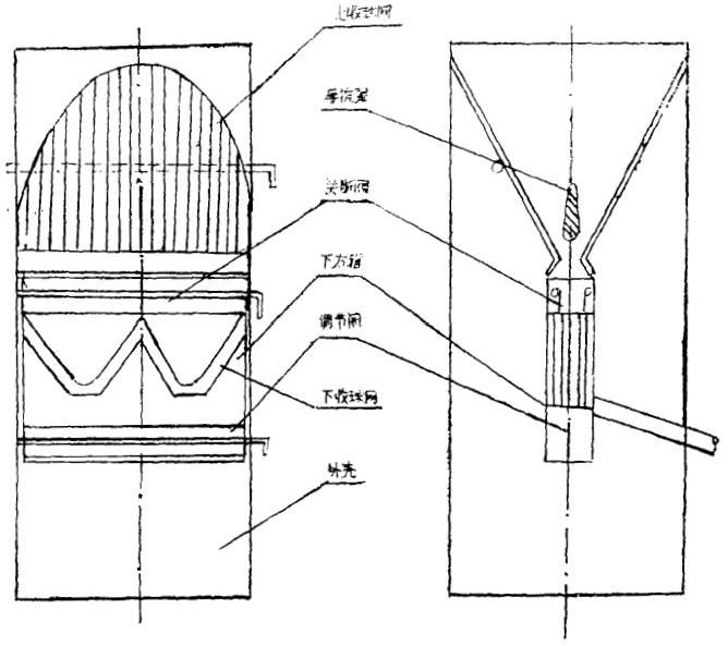 膠球泵,型號:12599-9收球網(wǎng),見圖2,是膠球清洗裝置中關(guān)鍵的部件,由上收球網(wǎng)、導(dǎo)流翼、關(guān)斷閥、下方箱、下收球網(wǎng)、調(diào)節(jié)閥等部件組成。