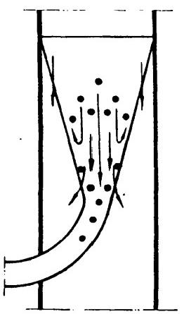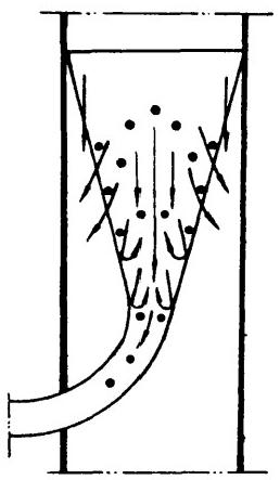 a、收球網內外壓差造成滯球水和膠球是沿著網的軸線流入收球網的。一般收球網成錐形,且部分開孔。當球和水流入網后,不開孔網壁就會給水流一個反作用力,使其流向中部,造成渦流,使膠球不能繼續(xù)向下運動。同時使網中部水流集中,密度增大。集中的水流使網孔及出口管不能一下流出。致使中部水流速度頭轉變?yōu)殪o壓頭。由于網內靜壓增大,造成網柵內部水流線向外扭曲。形成網的內外壓差。這個橫向壓差,就把沿網壁運動下來的球推壓在網柵上,造成收球網滯球如圖一。