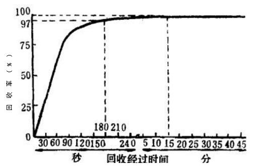 通過(guò)試驗(yàn)又得出了如6圖所示的過(guò)去不清楚的球的回收率和時(shí)間關(guān)系。從回收開(kāi)始經(jīng)3分鐘回收了97%,回收100%需要的時(shí)間長(zhǎng)約15分鐘。