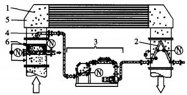 1—清洗球;2—收球器;3—循環(huán)單元;4—注球管;5—冷凝器;6—二次濾網(wǎng)