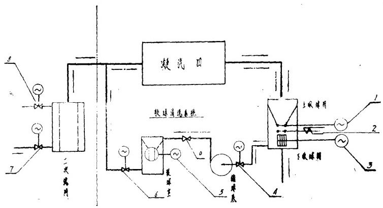 凝汽器膠球清洗程序控制的設(shè)備和部件有:裝球室、切換閥、上下收球網(wǎng)、關(guān)斷閥、膠球輸送泵及泵入口閥等。
