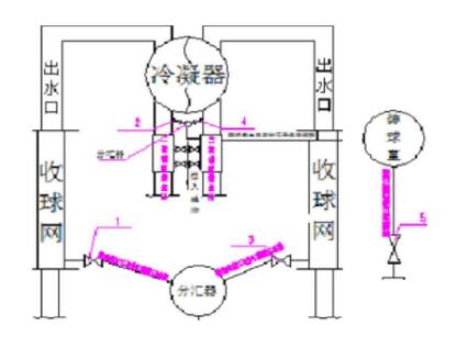 球室、膠球泵、分匯器,部分閥門及相關(guān)聯(lián)管道組成。