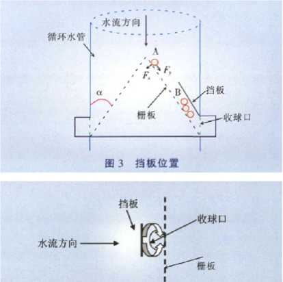 3.2在收球網(wǎng)柵板膠球出口處加擋板