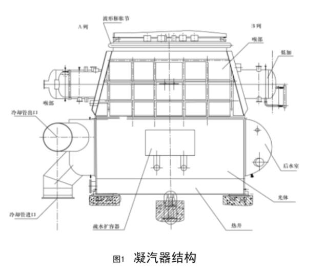 1.1.1.1凝汽器是汽輪機輔助設(shè)備中主要的一個部套,它的主要作用是利用循環(huán)冷卻水使汽輪機排出的蒸汽凝結(jié),在汽輪機排汽口中建立并維持所需的真空,獲得純凈的凝結(jié)水以供鍋爐給水。