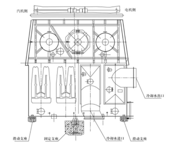 1.1.1.2正常工作時,冷卻水由循環(huán)泵輸入到中間的兩個前水室,經(jīng)過凝汽器中間兩組管束,流到后水室,經(jīng)轉(zhuǎn)向通過凝汽器外側(cè)的兩組管束流回到兩側(cè)的前水室并排出凝汽器。蒸汽由汽輪機排汽口進入凝汽器,然后均勻地分布到管子全長上,經(jīng)過管束中央通道及兩側(cè)通道使蒸汽能夠順利地進入主管束區(qū),通過冷卻水管的管壁與冷卻水進行熱交換后被凝結(jié):部分蒸汽由中間通道和兩側(cè)通道進入熱井對凝結(jié)水進行回熱,以消除過冷度,起到除氧作用。剩余部分氣混合物經(jīng)空冷區(qū)再次進行熱交換后,少量未凝結(jié)的蒸汽和空氣混合物經(jīng)抽氣口由抽真空設(shè)備抽出。凝結(jié)水匯集在熱井內(nèi),由凝結(jié)水泵抽出,升壓后輸入主凝結(jié)水系統(tǒng)。